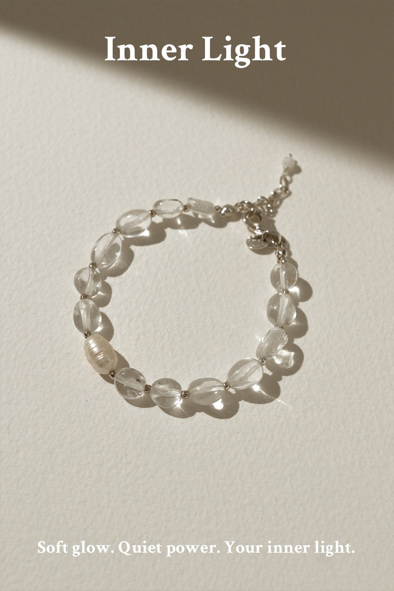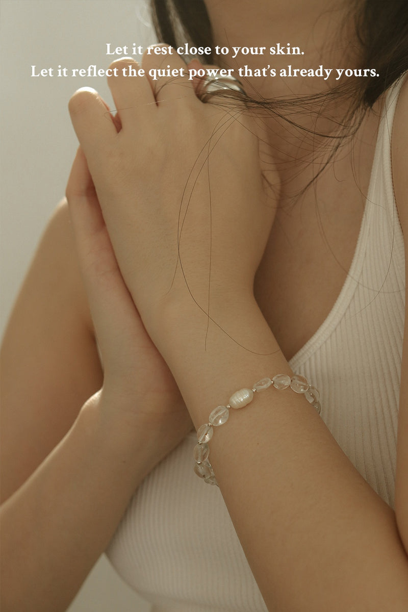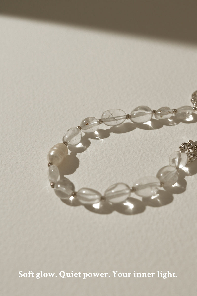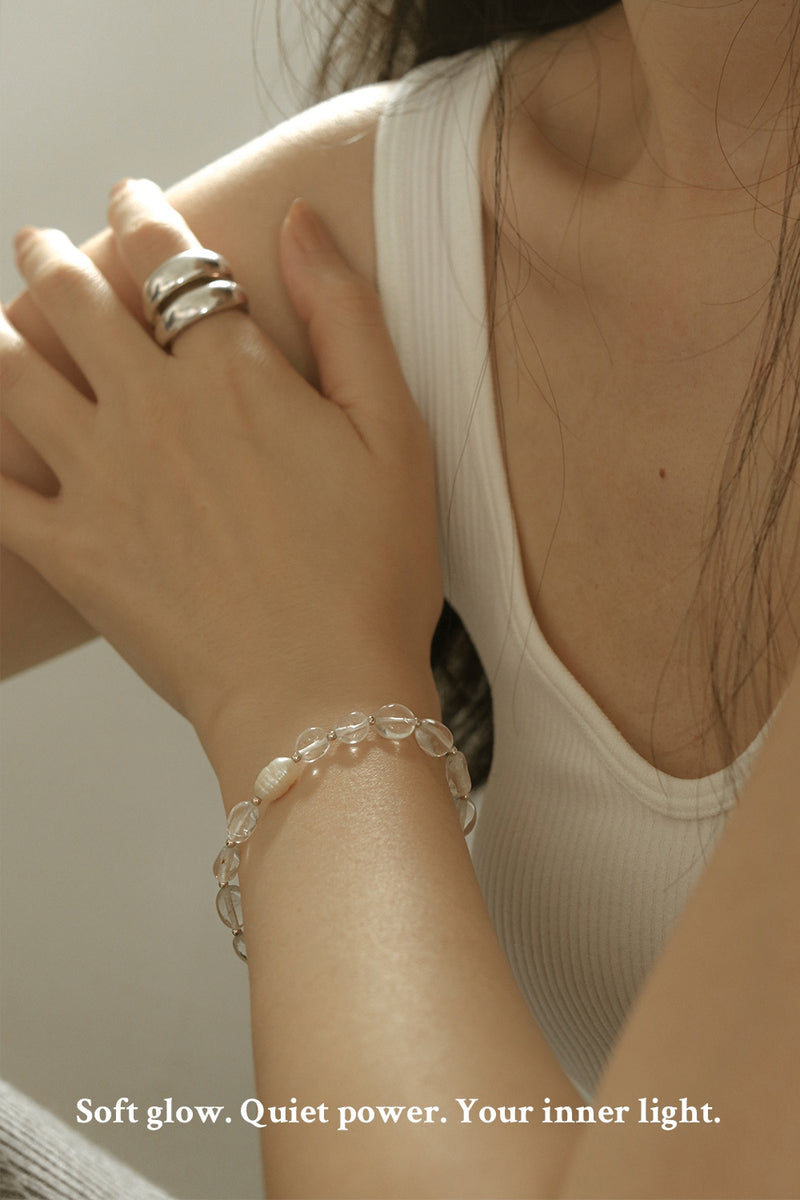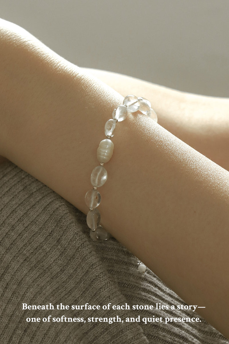 Radiating soft, feminine charm, this bracelet features quartz and pearlescent touches for a refined, glowing finish perfect for everyday beauty.