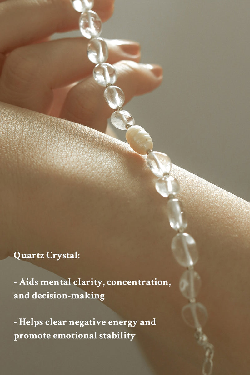 Material: Hypoallergenic 925 Sterling Silver with Freshwater Pearl & Quartz Crystal