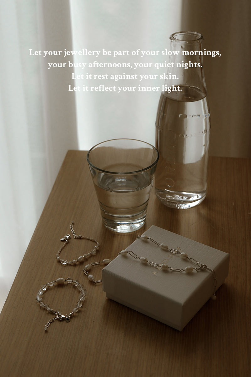 *Freshwater pearls, natural stones, and crystals are delicate and can be easily scratched or damaged by harsh chemicals and acidic sweat. To keep your jewellery looking its best, avoid soaking it in water or exposing it to excessive moisture—please remove your piece before swimming, using a jacuzzi or sauna, and showering. Always store your jewellery in a dry, safe place to maintain its beauty and longevity.